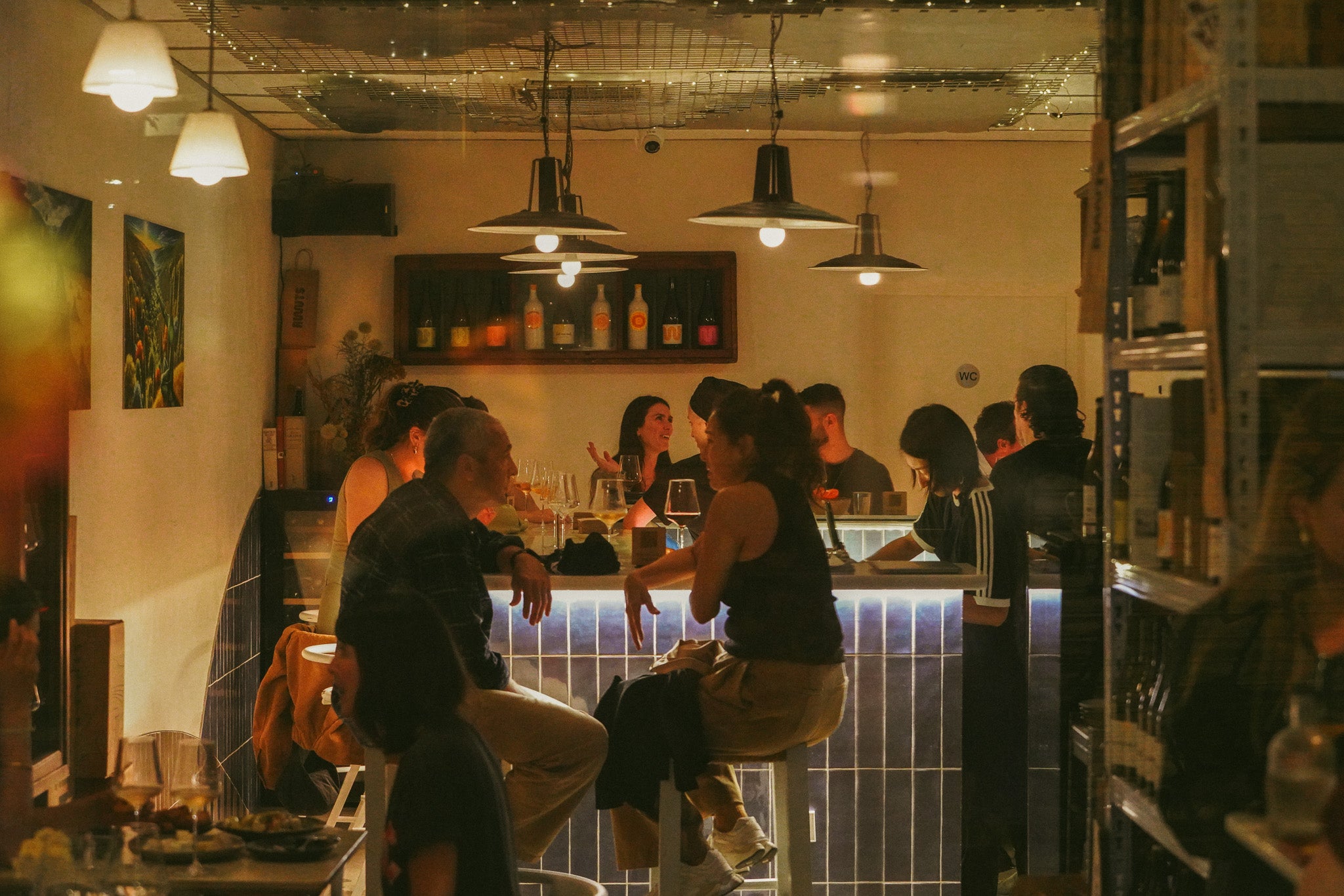 vinos naturales, de mínima intervencion y tradicionales; una selección de +20 vinos a copas que cambiamos semanalmente donde damos especial protagonismo a los vinos que elaboramos en nuestros proyectos vinícolas; RUUUTS en Toledo, ELEFANTÍAQUES en el Empordà y el proyecto nómada de FRANCESC NICOLÁS